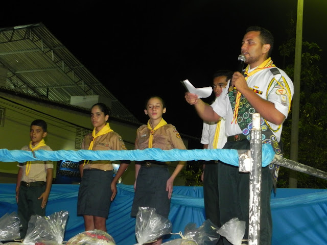 No sábado, em praça pública, os desbravadores aspirante foram condecorados e receberam lenços e bótons de boa conduta.