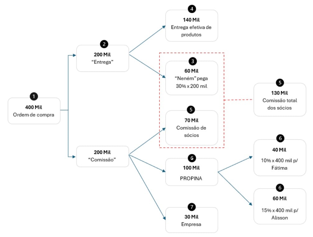 “Dos duzentos ele vai e pega trinta por cento (30%), sessenta (R$ 60.000,00), então aqui ele comeu sessenta (R$ 60.000,00)!”